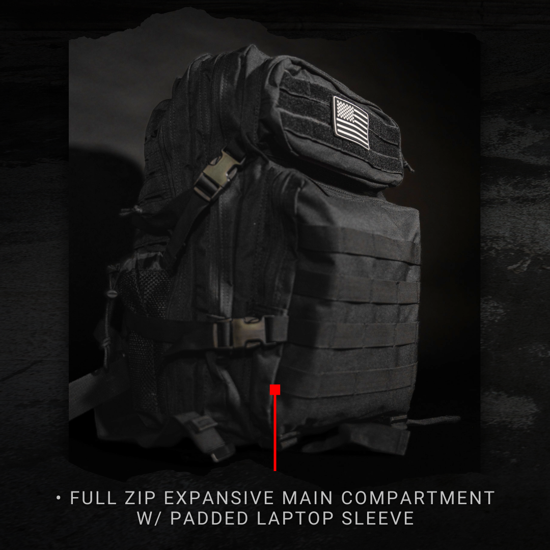 With a spacious main compartment, multiple front and side pockets, and a separate laptop sleeve, this tactical backpack can hold a wide range of gear, from clothing to electronics.